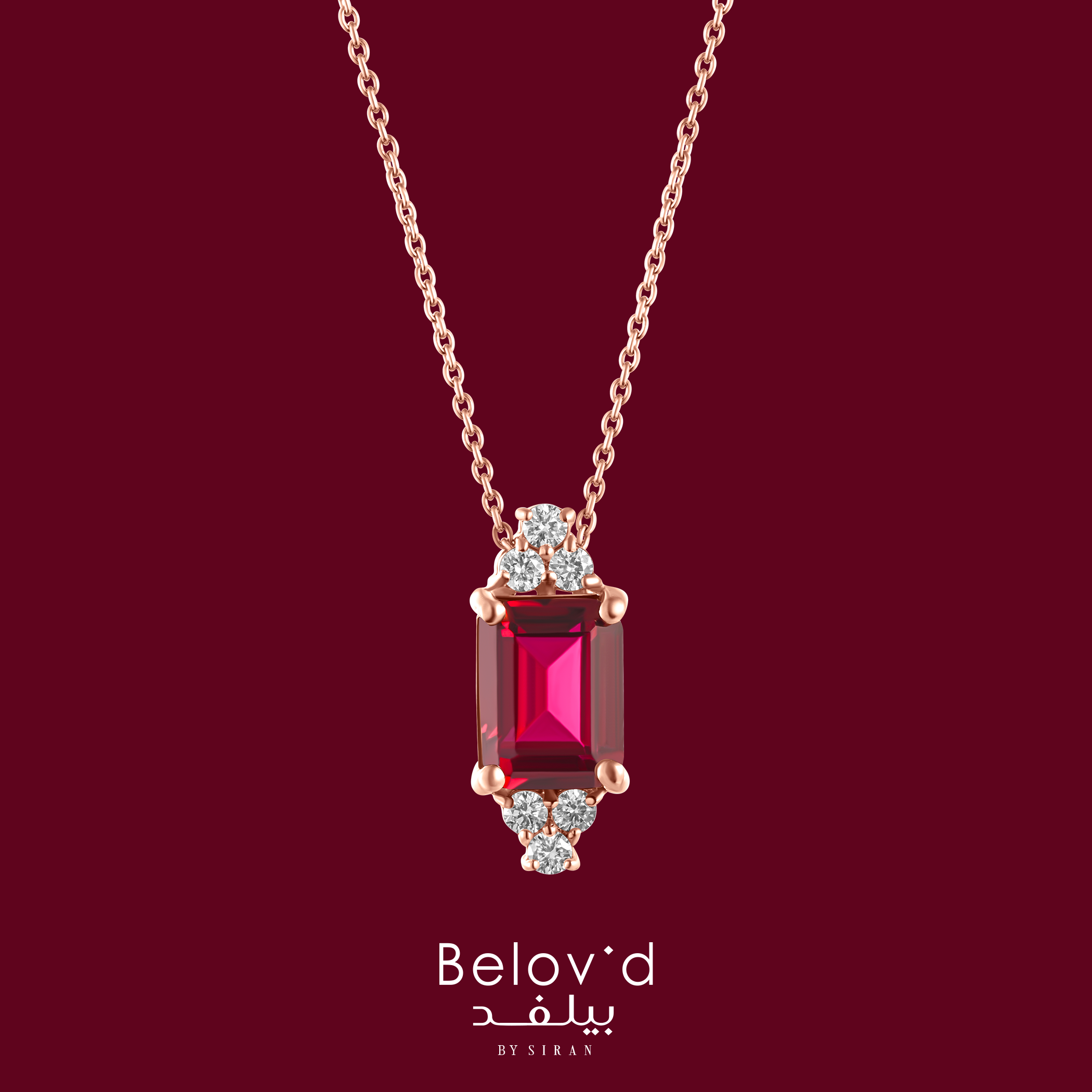 18K Belov'd Diamond Necklace Ruby Stone - S-H081PS