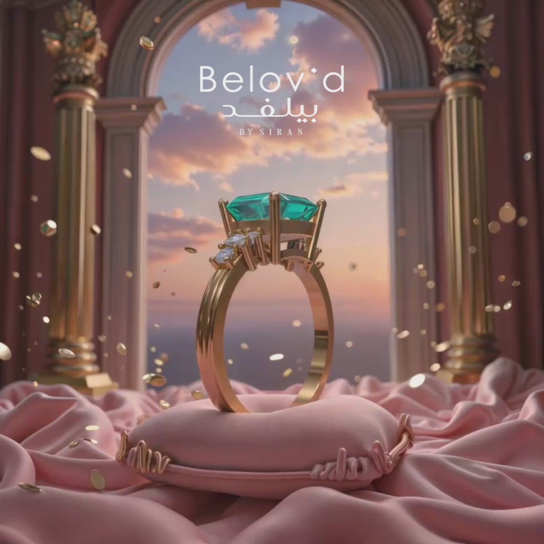 18K Belov'd Diamond Ring Emerald Stone - S-H078RS